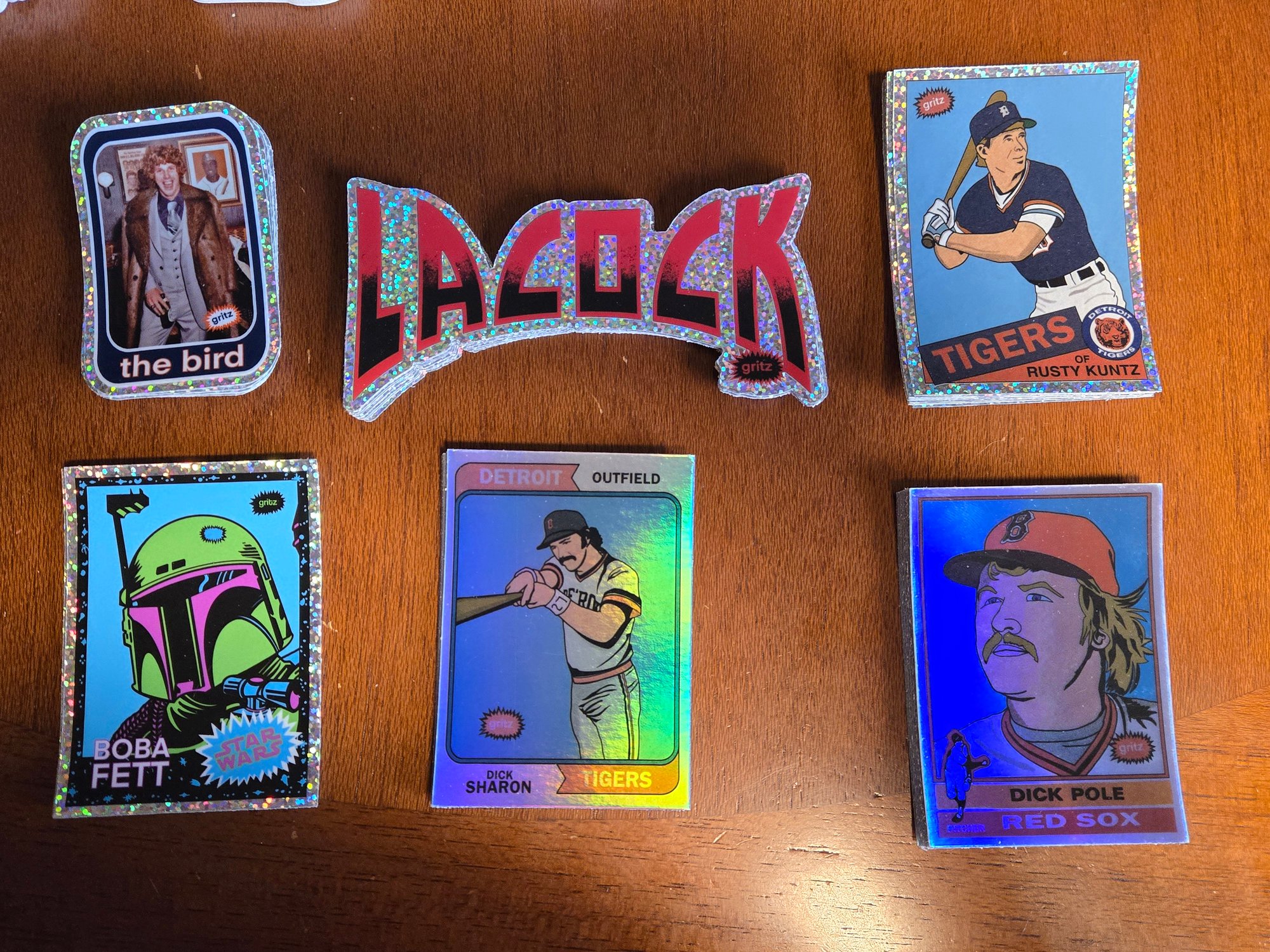 * TWO random short-print foil or glitter stickers. These things shine brighter than a casino floor at midnight. You’ve got legends, oddballs, surprises — folks, some of these are already impossible to find.